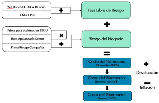 NOTA: El costo del patrimonio debe estar expresado en términos reales (después de habar descontado la inflación) en la moneda del país donde pertenece la compañía que se está valorando.